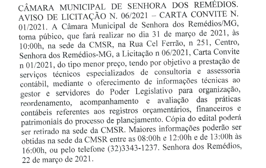 ➡️Ouvidoria da Câmara Municipal de Senhora dos Remédios