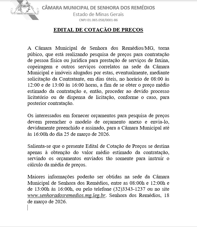 Câmara Municipal de Senhora dos Remédios- MG