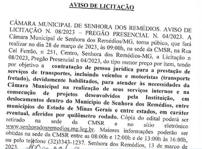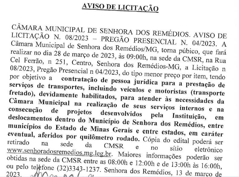➡️Ouvidoria da Câmara Municipal de Senhora dos Remédios