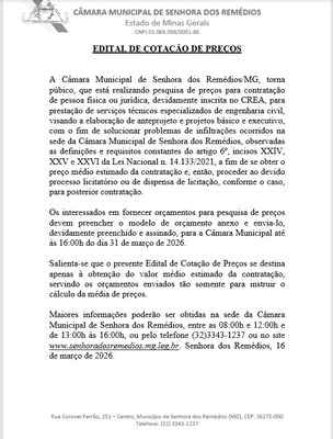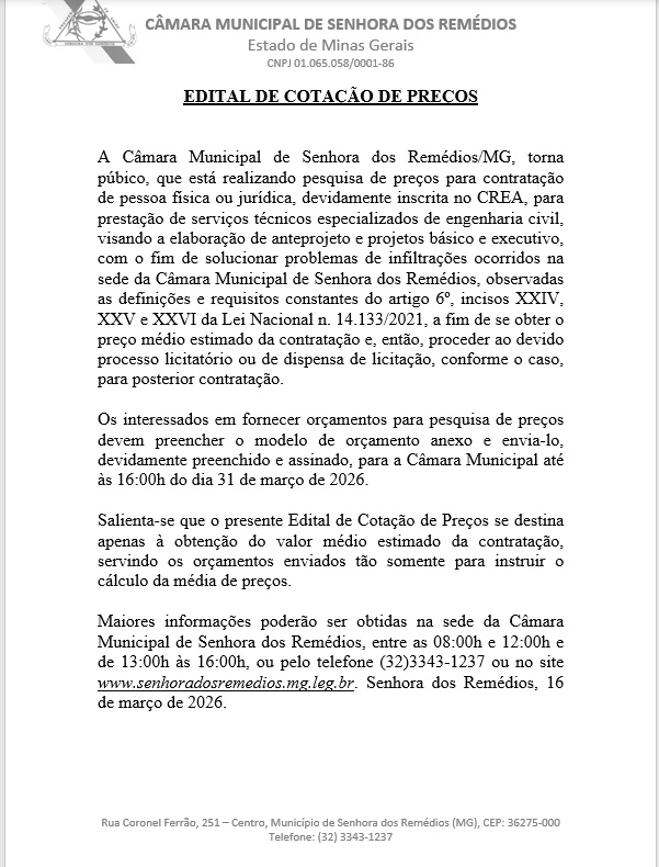 ➡️Ouvidoria da Câmara Municipal de Senhora dos Remédios
